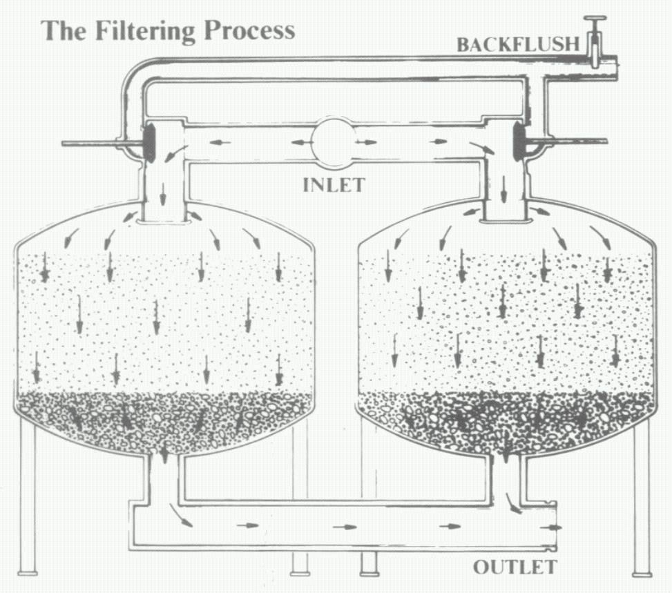 在所有過濾器中,用砂石過濾器處理水中有機雜質和無機雜質最為有效,這種過濾器濾出和存留雜質的能力很強,并可不間斷供水。只要水中有機物含量超過10mg/L時,無論無機物含量有多少,均應選用砂石過濾器。